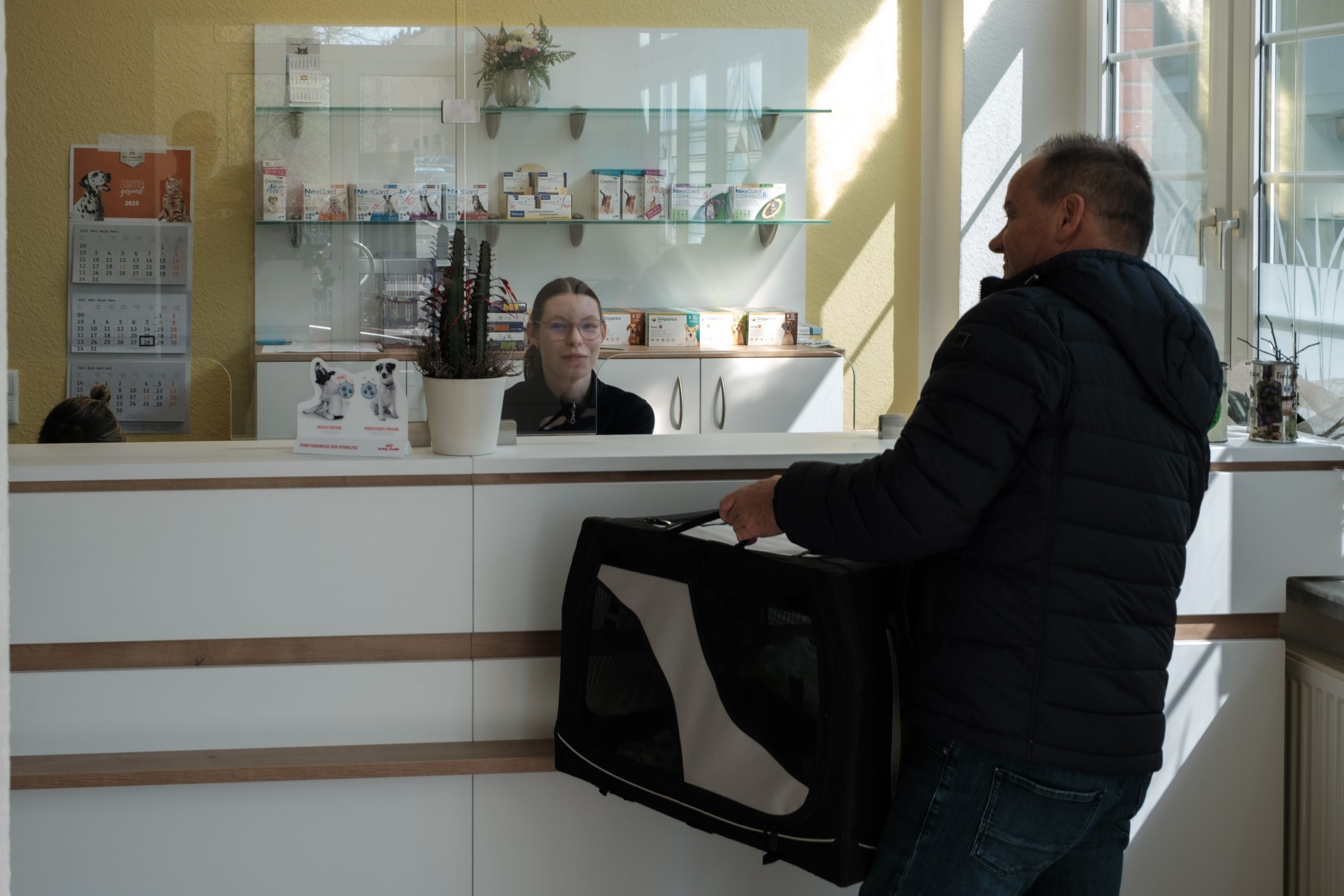 mit Kater Max“Die neuen Räume sind wirklich schön und die Wartezeiten haben sich verbessert. Mein Kater Max fühlt sich im separatem Wartezimmer für Katzen sehr wohl”